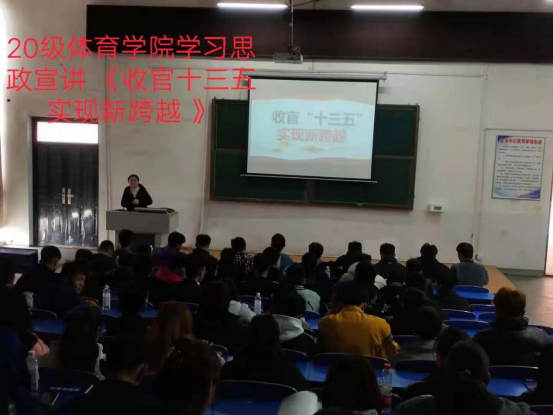 423日下午思政宣讲团成员、思政部教师邹红双在开元校区五区三楼多媒体教室开展以《收官“十三五” 实现新跨越》为主题的形势与政策专题讲座。来自体育学院2020级的学生参加了本次讲座。