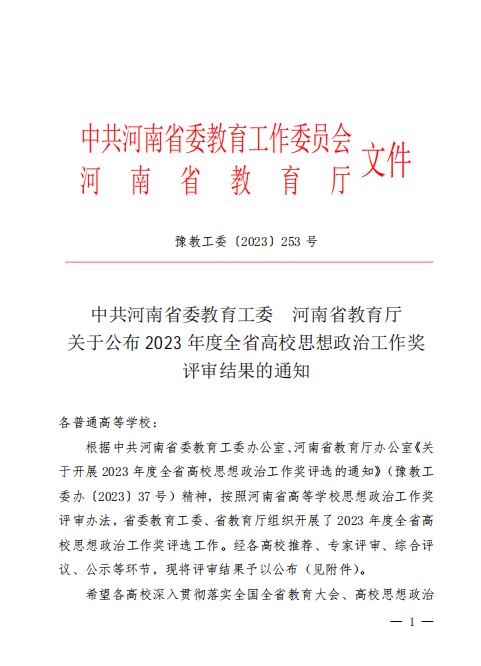 由中共河南省委高校工委、河南省教育厅组织开展的2023年度全省高校思想政治工作奖评选结果揭晓,周口职业技术学院911爆料免费观看+申报的《“课社协同”思政育人模式》荣获“河南省高校思想政治工作优秀品牌”。
