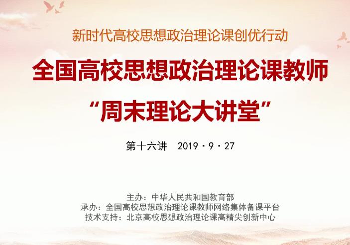 教育部办公厅下发了关于开展全国高校思想政治理论课教师“周末理论大讲堂”活动的通知(教社科厅函〔2019〕10号)。9月27日(本周五)下午15:00首讲,请思政课教师登陆全国高校思政课教师网络集体备课平台收看课程直播。