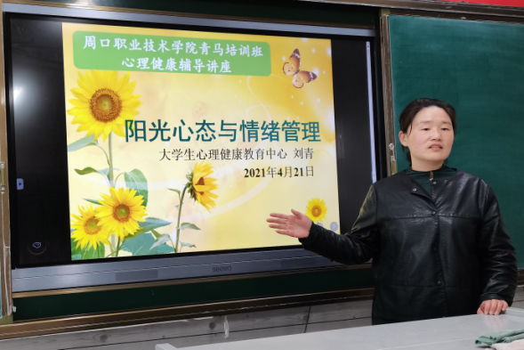 421下午我校心理健康教育中心刘青老师受邀为青马班的学生作了题为阳光心态情绪管理的心理健康讲座。本次讲座由文化教育学院团总支书记青马班班主任普俊老师主持,本期青马班60余名学生在现场聆听了讲座