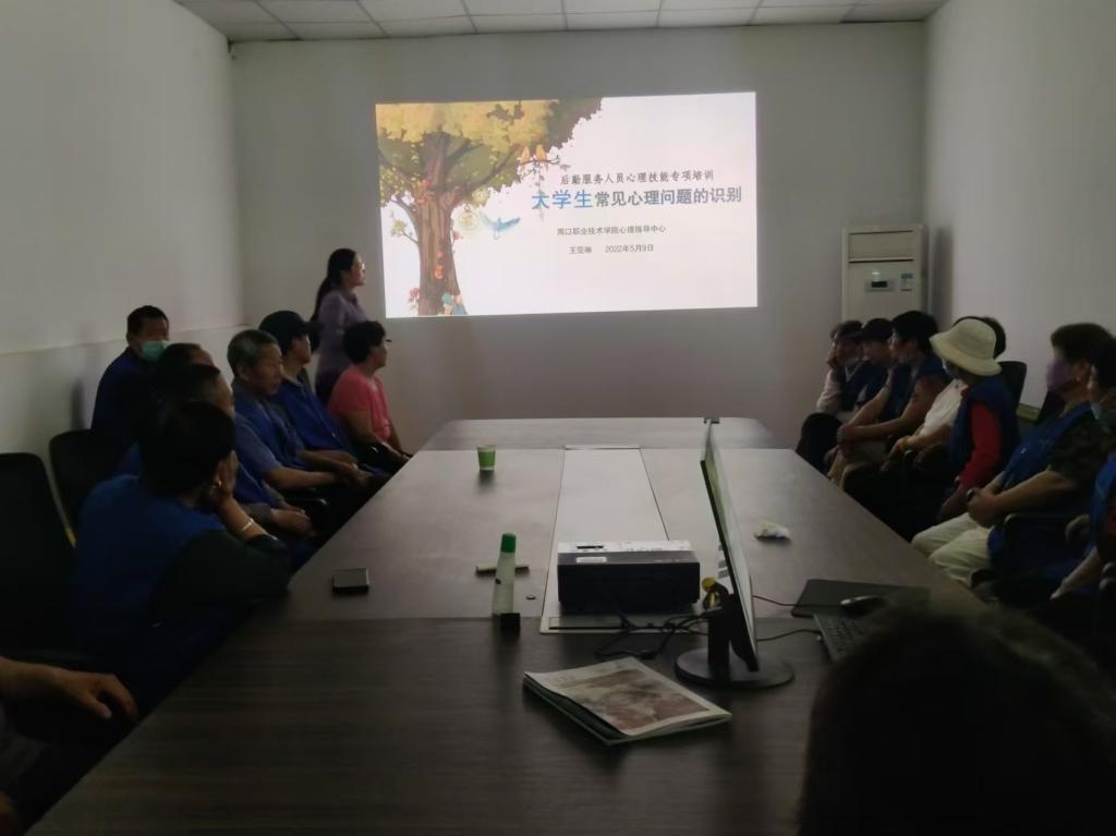 2022年5月9日,由心理指导中心主办的一场心理健康培训活动成功举行。主讲人是心理指导中心的教师王亚琳,参与人员包括开元校区后勤宿管和食堂服务人员等。此次活动的目的是为了提升后勤及食堂工作人员对心理问题的认识和应对能力,以便他们能更好地服务于校园社区,同时维护自身的心理健康。