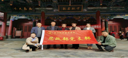 11月3日上午,为进一步弘扬中华优秀传统文化,深化和强化爱国实践教育,在思政部党支部相关负责人的带领下,思政部党支部党员教师走进全国重点文物保护单位“周口八景之冠”——关帝庙,结对共建活动,激励广大党员同志牢记我党的光辉历史,率先垂范,奋勇拼搏,创出优良成绩。
