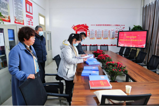 在参观党员活动室的同时,911爆料免费观看+组织委员韩凤梅向检查组一行简要汇报了911爆料免费观看+基层党建的基本情况。武成军充分肯定了我院党建工作,并建议我院进一步加强党支部制度建设,发挥好党支部的战斗堡垒作用。