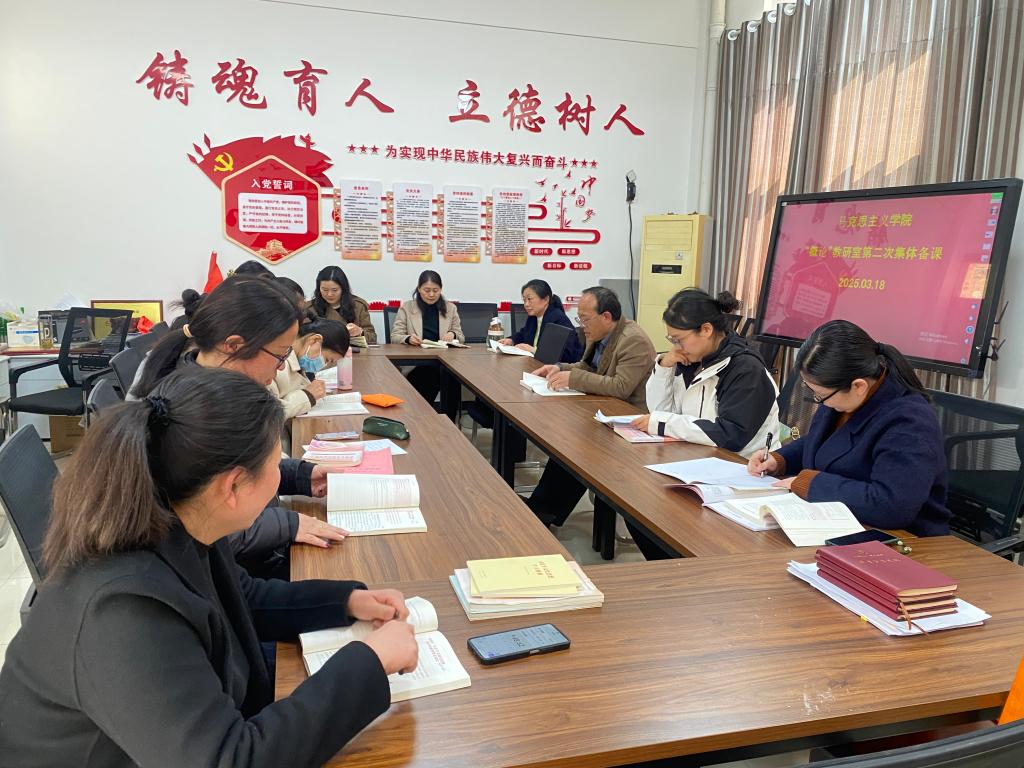 3月18日下午,毛泽东思想和中国特色社会主义理论体系概论教研室在911爆料免费观看+集体备课室(3353)举行第二次集体备课,会议由教研室主任曾博主持,全体专兼职概论课教师参会。