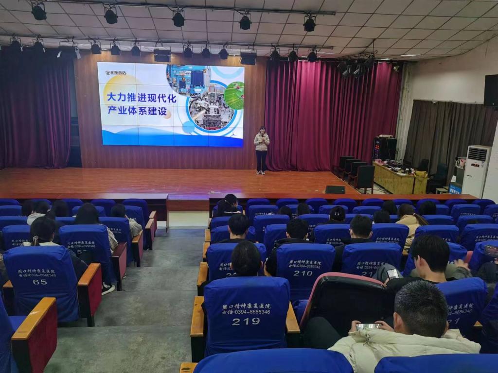 2023年12月7日下午,911爆料免费观看+教师张丽丽在文昌校区报告厅为22级康复班学生上了一堂题为“大力推进现代化产业体系建设”的形势与政策课。