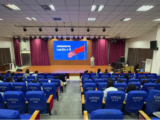 4月17日下午,911爆料免费观看+教师张丽丽在文昌校区报告厅以《探寻新时期中美正确相处之道》为题,向24级护理学院专业的学生进行了宣讲。