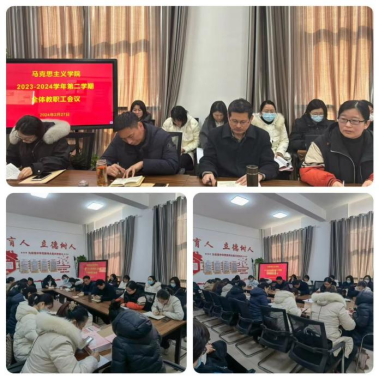 贾涛传达了学校工作会议精神,并从党建、教学科研、心理健康教育、制度建设等方面对2023年度工作进行总结,对2024年春季学期工作进行了安排部署。他强调,全体教师要以高质量党组织建设为引领,以思政课教育教学为重点,在政治理论学习、教学能力大赛、教学科研等方面下功夫、上台阶,扎实推动学院内涵式发展,为学校发展贡献力量!