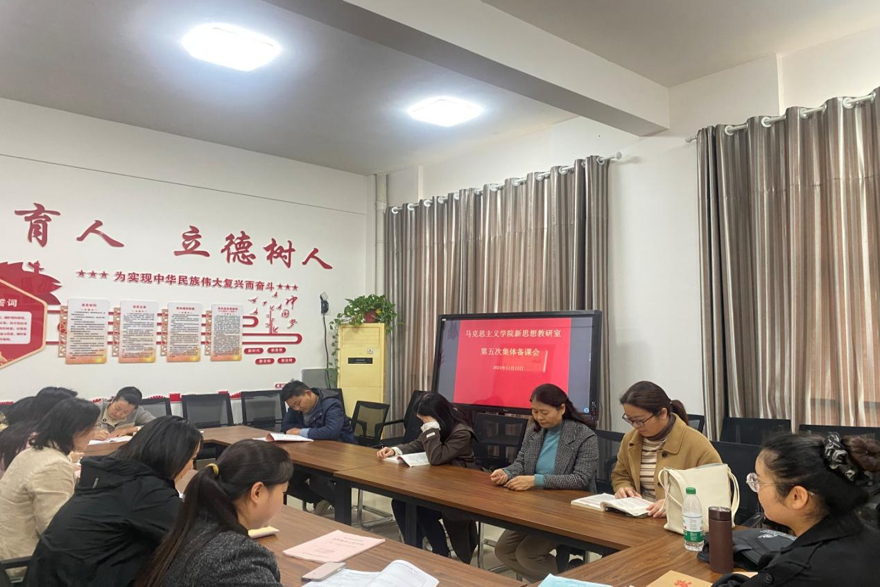 11月12日下午,习近平新时代中国特色社会主义思想概论教研室第五次集体备课活动在开元校区集体备课室召开,教研室全体任课老师出席,会议由教研室主任孟秀芹主持。